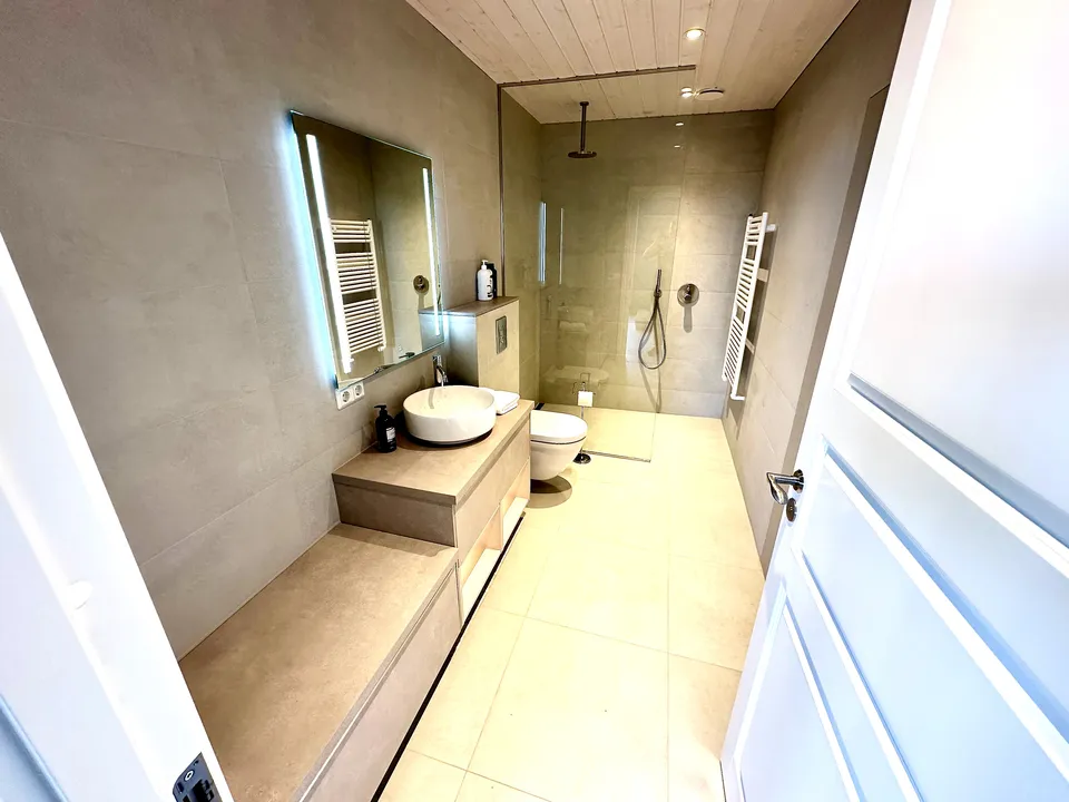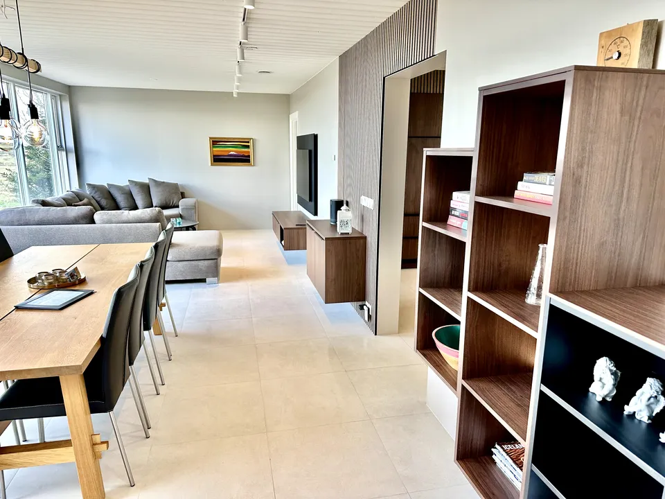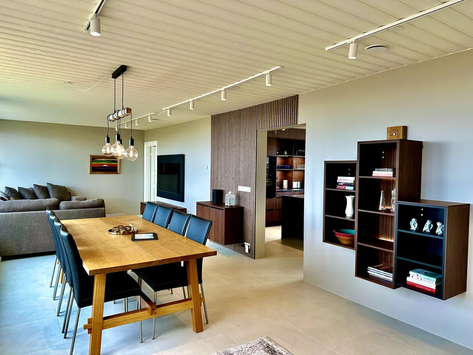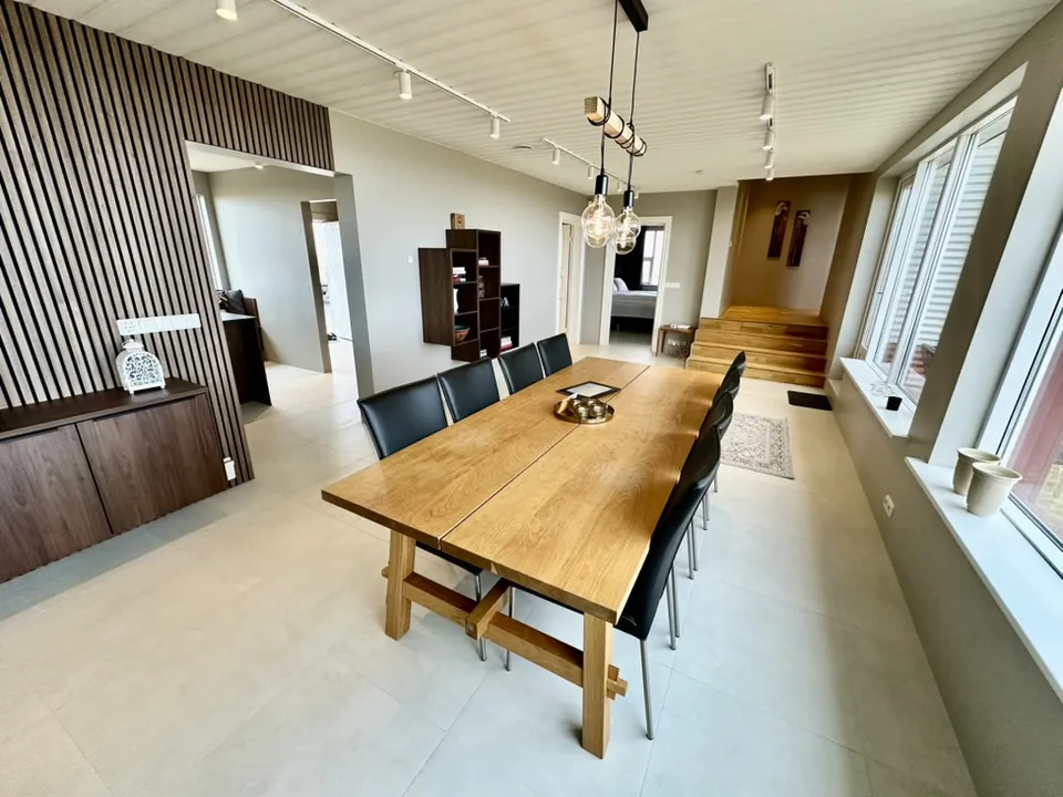 The design of the house is outstanding and well thought out. It has large windows, open space, Natural stone tiles, Designed lighting and one of the most advanced and greenest floor heating systems installed in houses today. The heating system is perfect and we can guarantee you a warm and cozy house in the winter time.